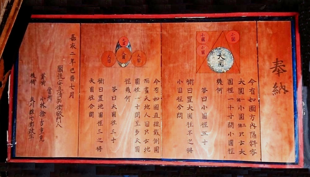 新しい、算額の画像をもらう、右の問面白い、自分で解答を付けられるといいな。