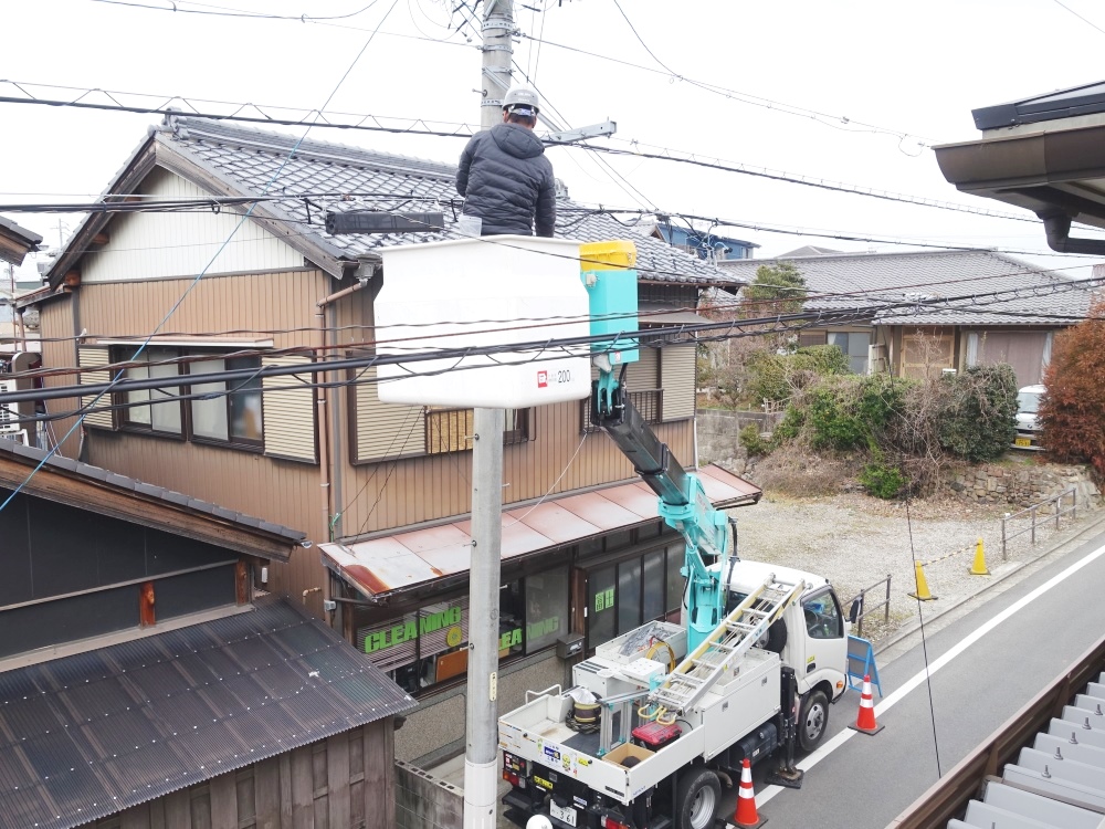 なんと、電柱の作業をするクレーンを道に止められないとかで・・・日延べになった。