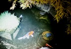 朝早く起きた・・・2階のベランダから池の鯉を写す・・・と、
