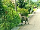 なんと途中。県道わきの民家の草花?を食べているカモシカに遭遇。