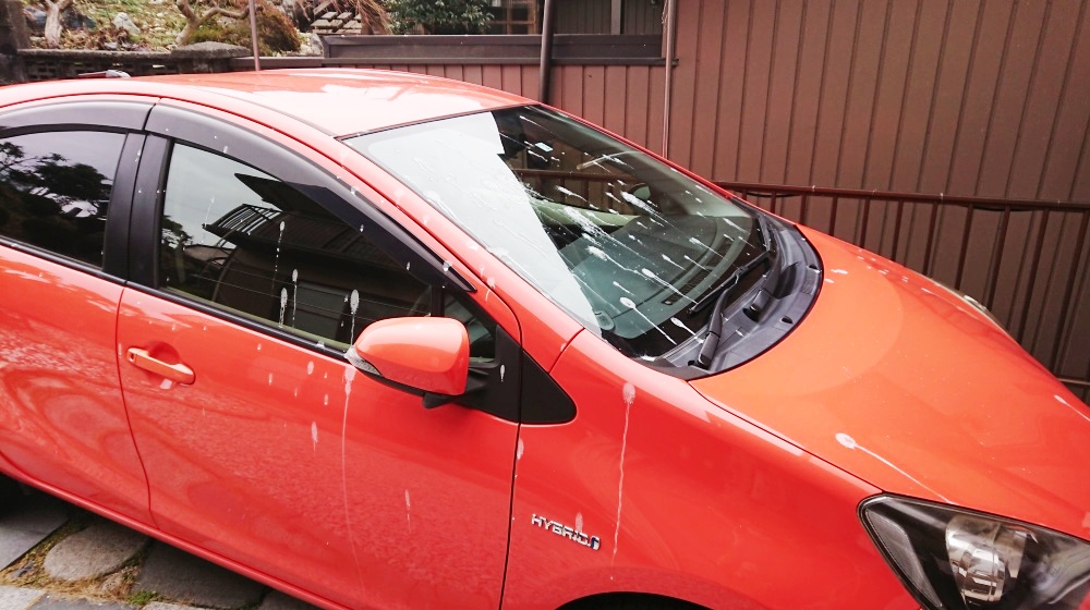 妻のオレンジ色のアクアに「鳥の糞攻撃」が見事!!!にされていました。