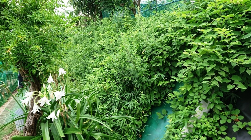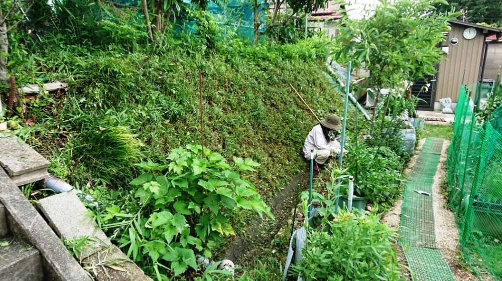 1・3枚目が除草前、2・4枚目が除草後の仕上げ作業中