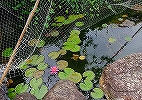 網は金魚の為の動物除け。普段は池をカバーしてます。