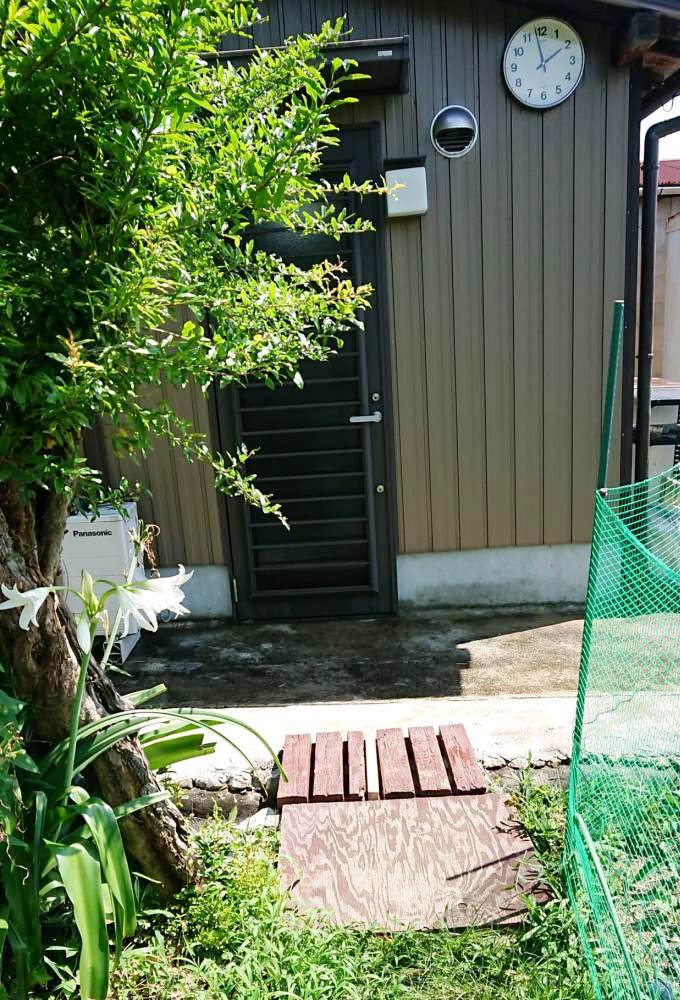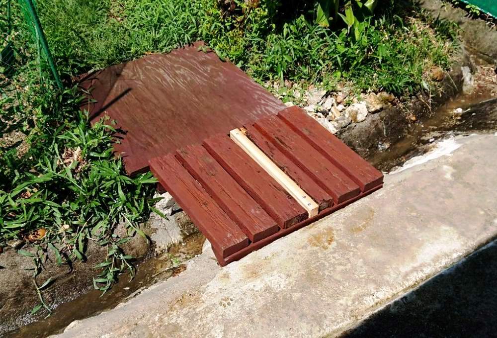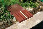 上の庭の作業小屋の前の橋(全長50cmですが (^_-) )の中央が朽ちて危険でした。