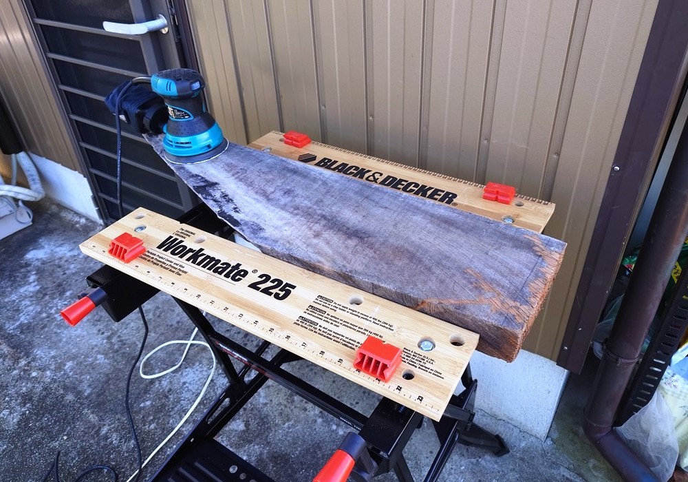 表面は、ボロボロになっているので、ランダムサンダーで磨く前の写真。