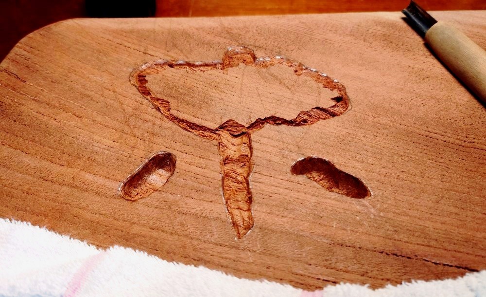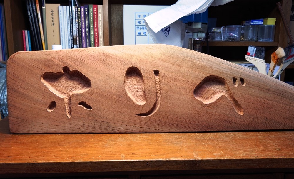 「ホ」の「十字」部分の彫り初めと今日の結果。