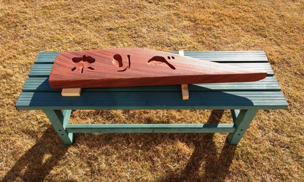仕上げの彫りと磨きをした後、ペイントの下塗りと仕上げ塗りをして、乾燥させている所。