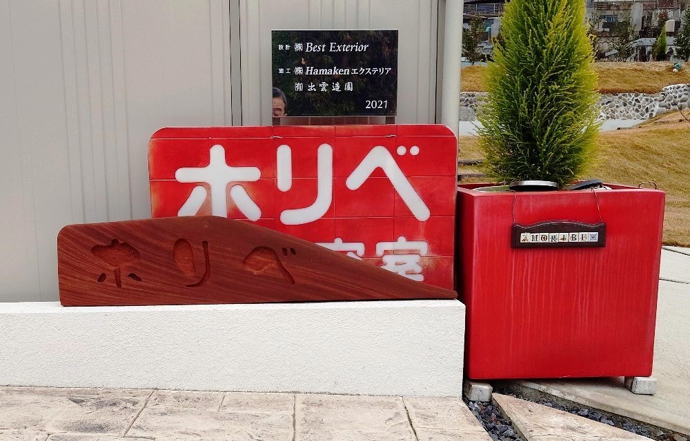 看板を仮においてみたが・・・文字の色をどうしよう?