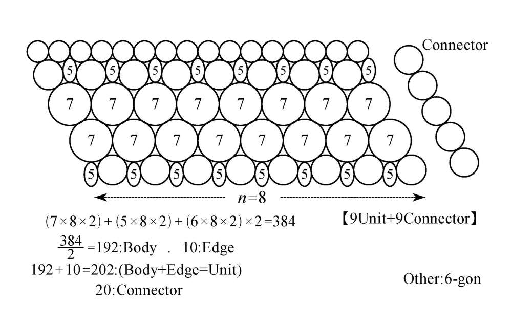 (2,9)Torus1Unitの写真とそれを構成するBeads202個。