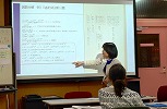 会の様子、以前愛知の高校で先生をしていた田中さん(現在大学勤務)の講演