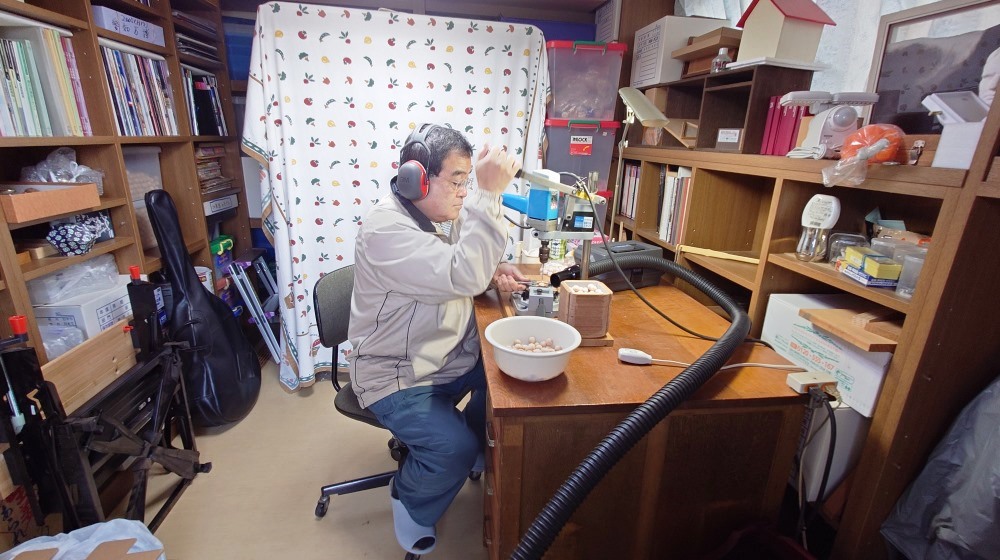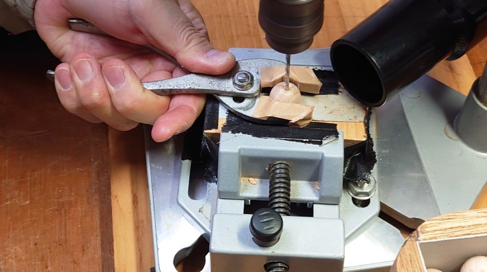 木球に穴を開けた。