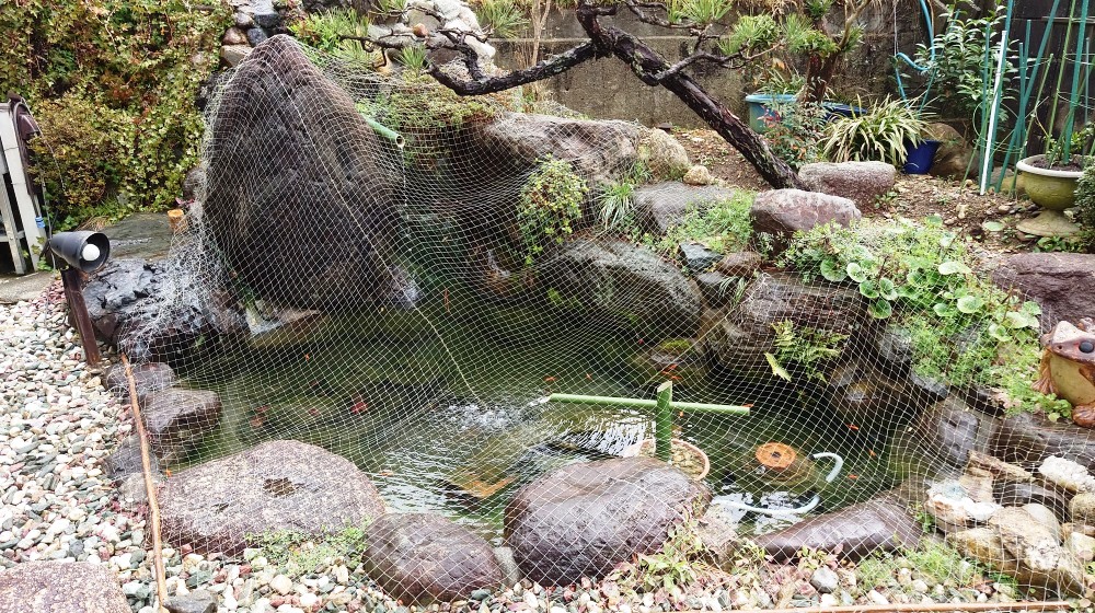 灰色のホースが見え見えですが、そのうちに藻が繁茂してまわりになじむのではと・・・。。