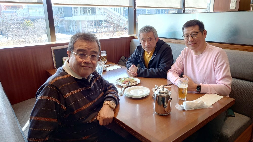 左から私(堀部)川村さん和田さん(自宅書斎、ランチのお店の写真)
