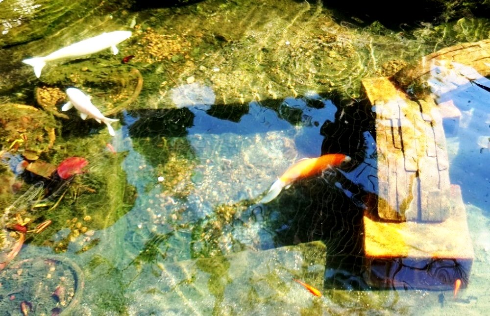 池に入れた鯉3匹・・・毎日様子を見ている。