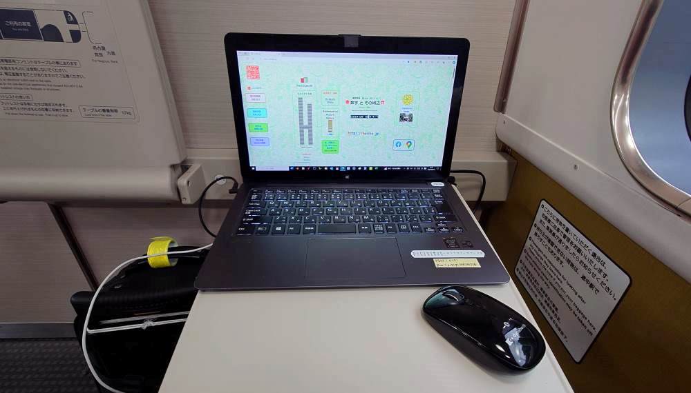 写真は、昨日の帰宅時の様子。発車前の近鉄特急と車内での作業風景。