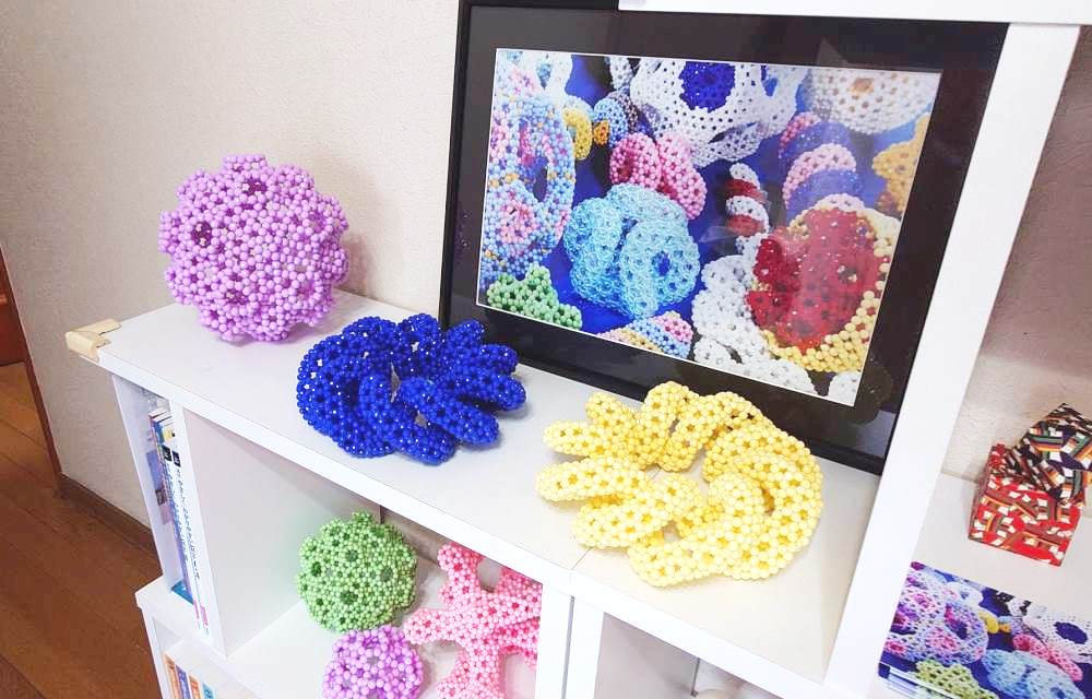 石黒建設の荻原さんに、以前プレゼントしていた、古いタイプの336個のビーズ編み。