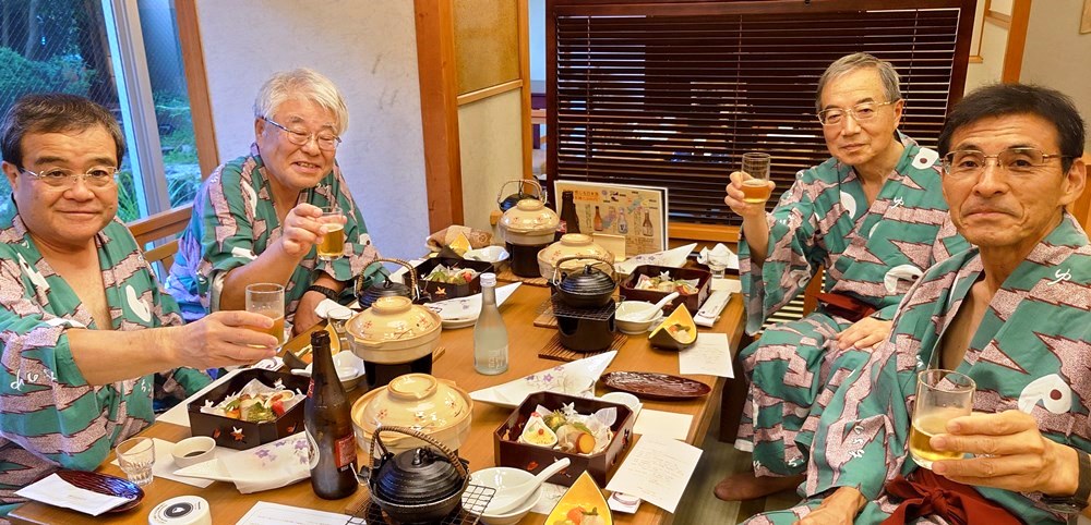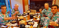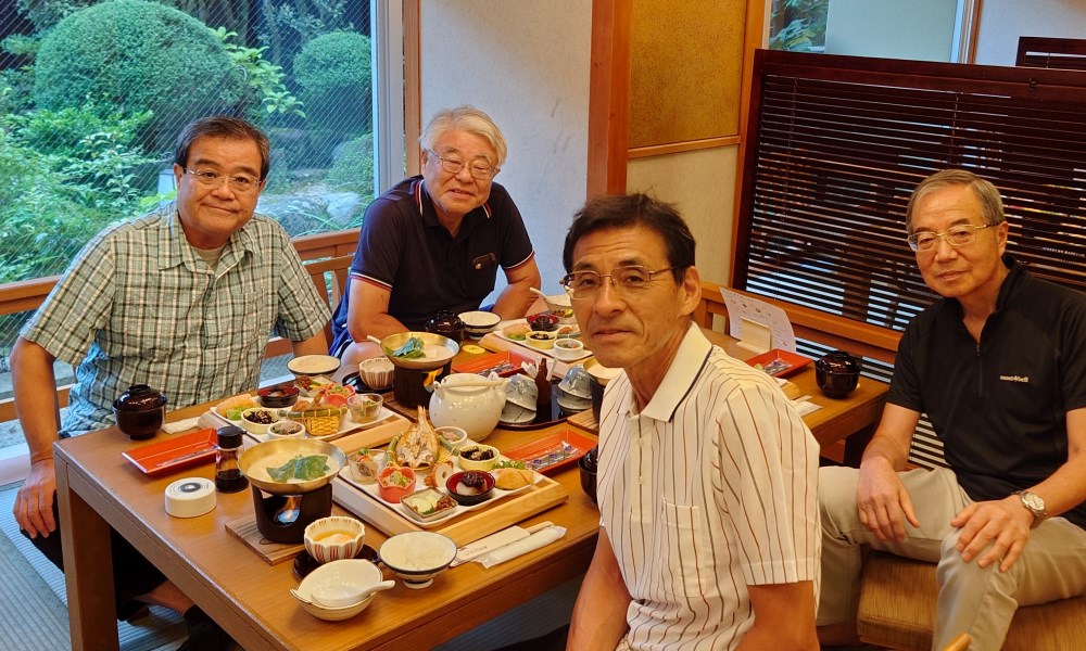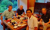 左から、妻(京子)私(和経)愛岐商事・会長の梶田さんと多治見市池田「日本料理 水野」にて