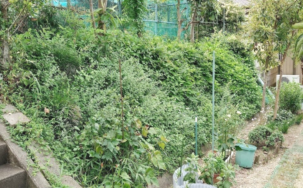 曇り空、暑くなかったので、庭の草刈りをした。