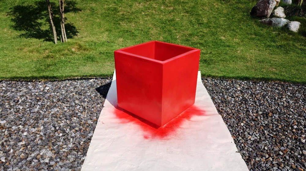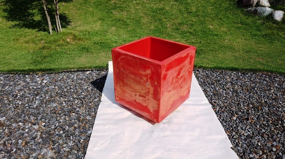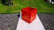 北庭の赤いプランター、色を塗り直した。