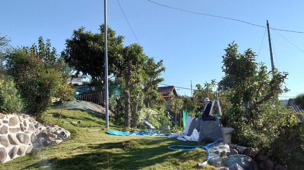 右手前と左側手前、そして、中央奥のドングリの枝をはらいました。