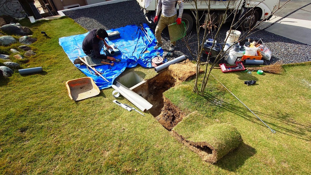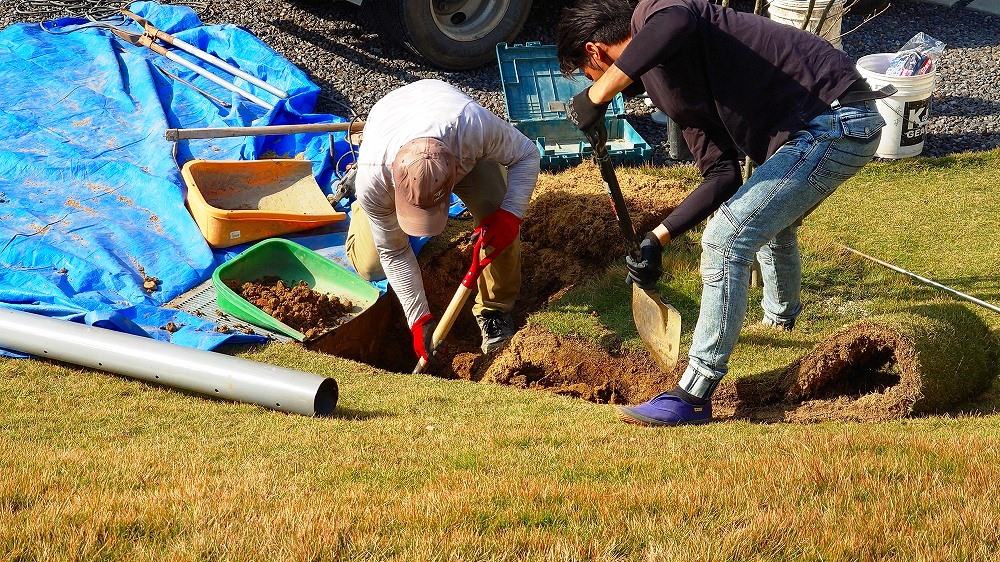 アオダモの根腐れを防ぐ排水の為の暗渠工事をした。
