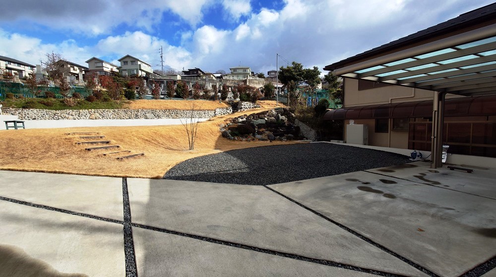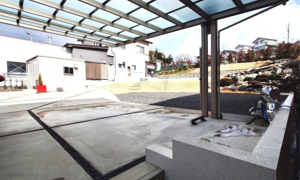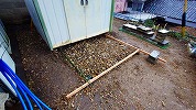 古小屋の前にブロックで犬走りを作る為、土台を作り始めた。