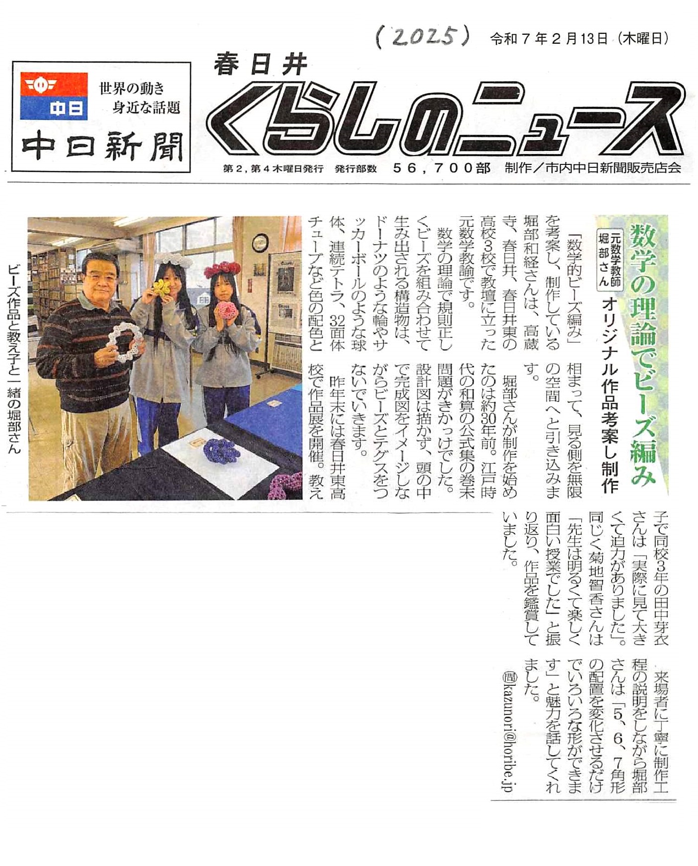 昨年12月「数学的ビーズ編み堀部和経作品展2」の取材記事です。