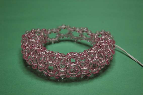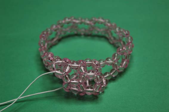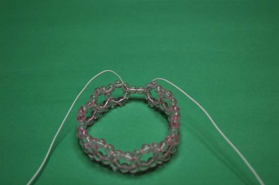 最後に、ビーズ全部にゴムひもを通すのを忘れないこと。 これで、ビーズ通しはすべて完了。 |