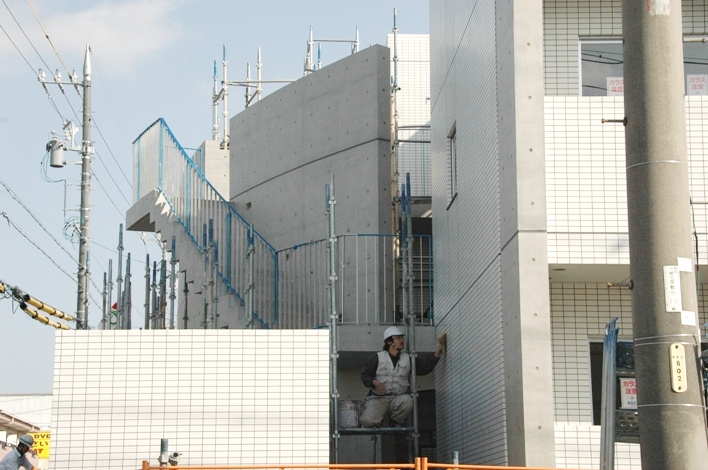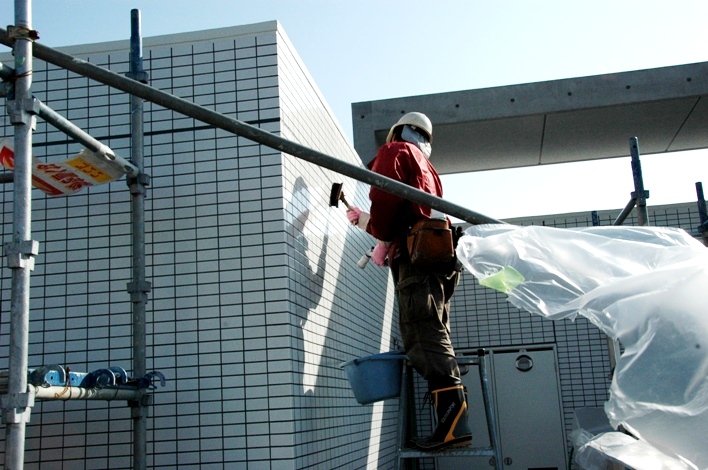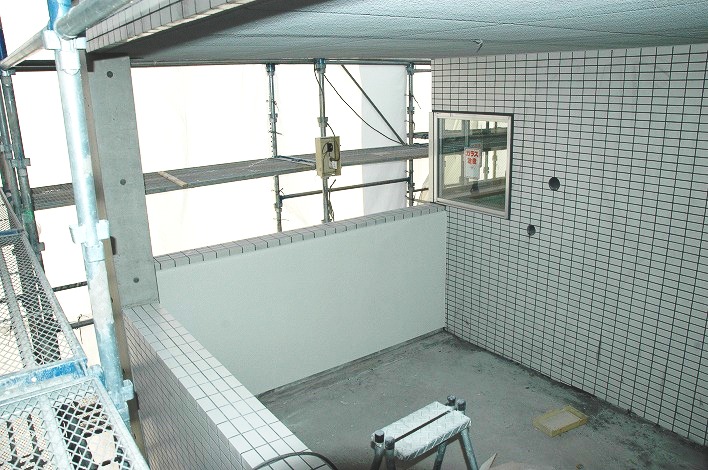 ![]() ![]() ![]() 2009/2/14 足場を固定 していた部分 のタイルの 仕上げ |