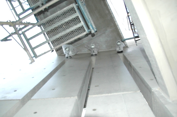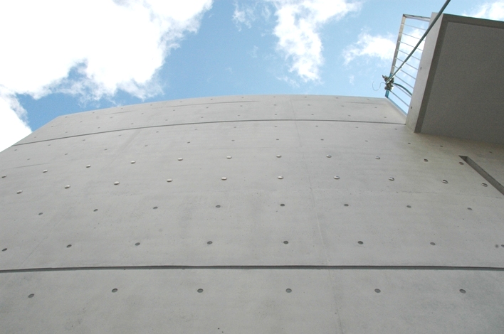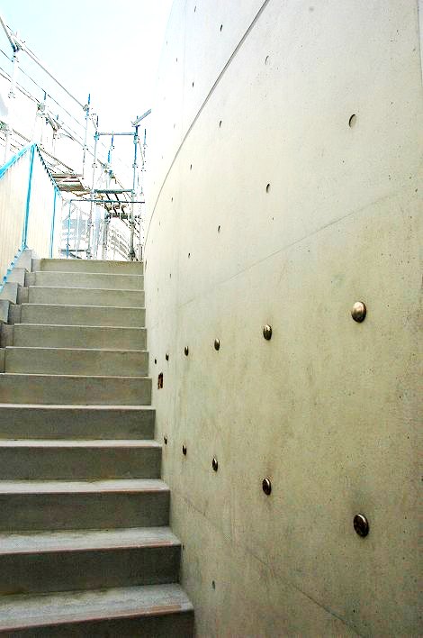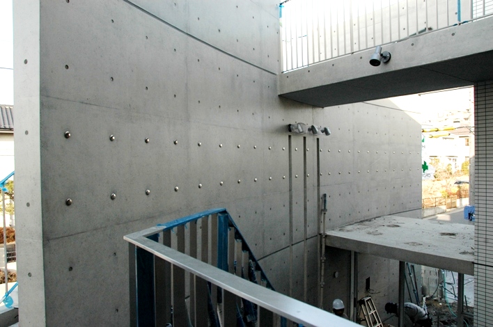 ![]() ![]() ![]() 2009/2/11 アール部 の外階段 を2階の 踊り場から 見上げた セパ穴の 2列には、 商品名 「セパット」 が取り付け てある |