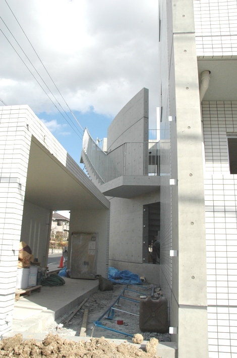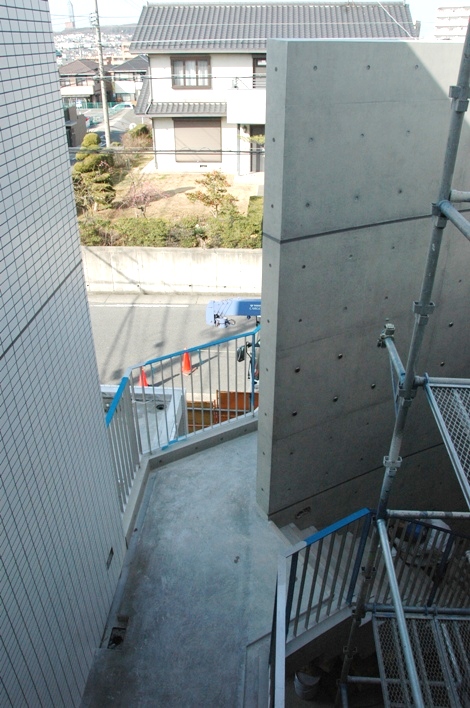 ![]() ![]() ![]() 2009/2/18 駐輪場 階段 アール壁 3階の屋根 を望む |