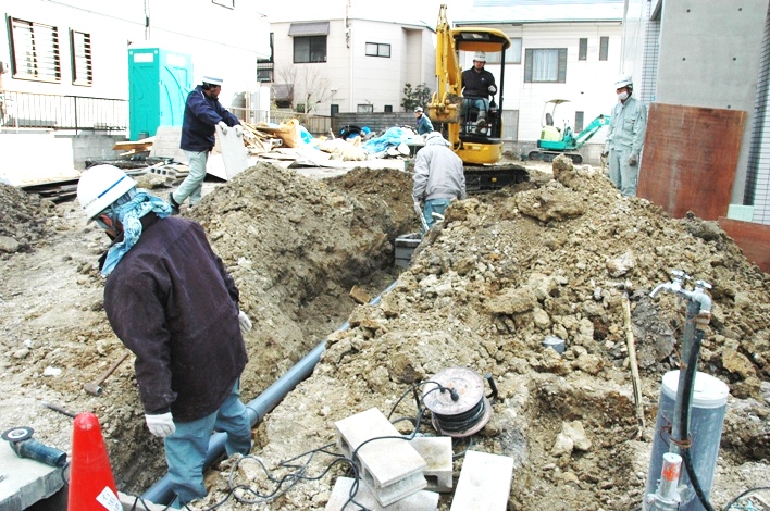 ![]() ![]() ![]() 2009/2/18 外構工事も 始まる。 駐車場下の 雨水排水工事 |