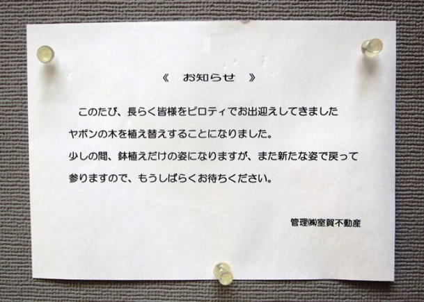 ![]() 2021/4/18 自転車置き場へのブローチの横の5色の石をマンホールのコンクリート端までにした。 ![]() 以前の写真。 ![]() 2021/4/23 夜景 ![]() 2021/4/23 建物の全景 ![]() 2021/4/18 旧・ゴミ置き場関係の赤い箱は撤去し、箱の下の植栽は・タマリュウ(玉竜)に戻す。 ![]() 以前の写真 |