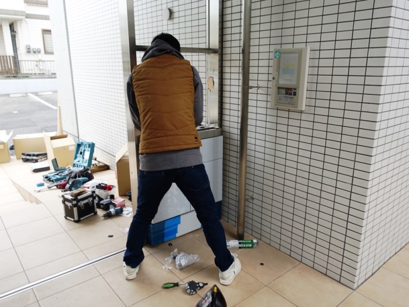 ![]() ![]() ![]() ![]() ![]() 2020/1/16 郵便受けと宅配ボックスの改修工事 一部、作業は残っています。・・・表と裏の化粧版の取り付けが未完。 |